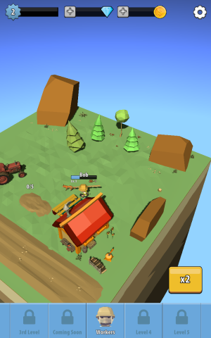 空闲伐木工人游戏,是一款趣味休闲的冒险游戏。你要控制着自己的人物不断地伐木,并且建造出巨大的房屋,更能用木头资源上房子升级为豪华大宅哦。