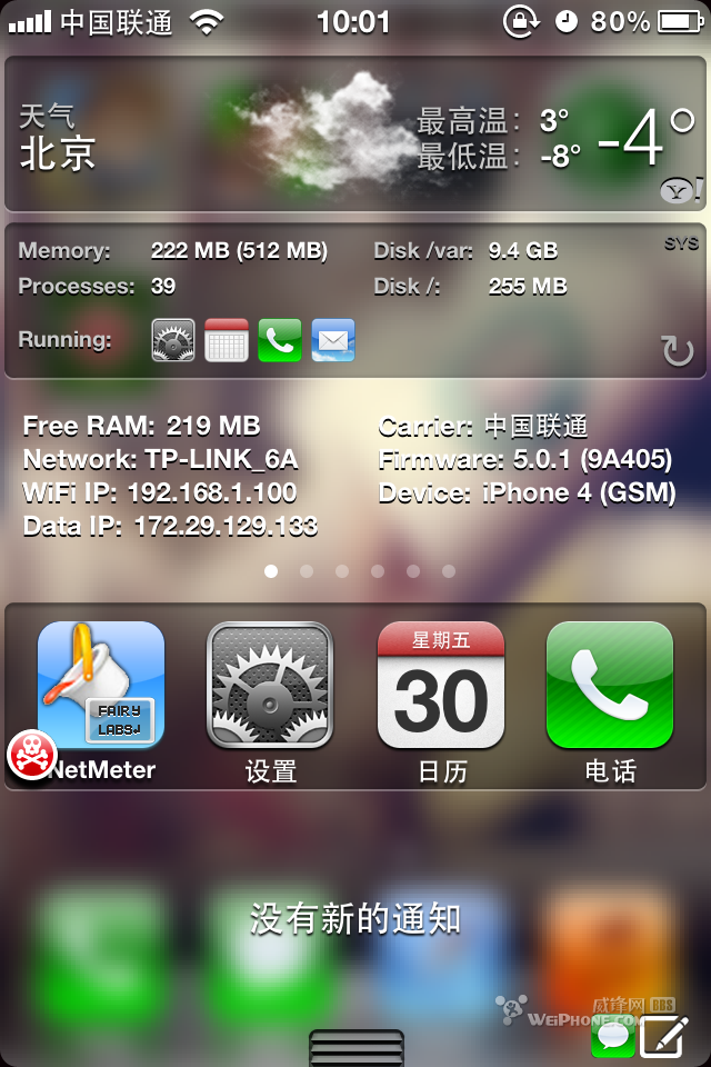 18、NetMeterWidget:通知中心显示,第一张图片天气下面就是它,还可以划动。