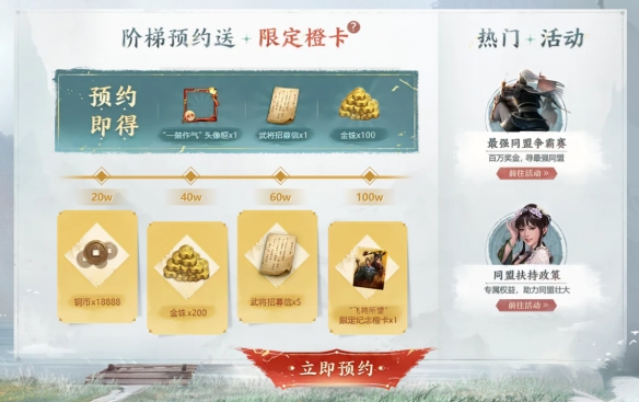 预约即得:“一鼓作气”头像框x1、武将招募信x1、金铢x100